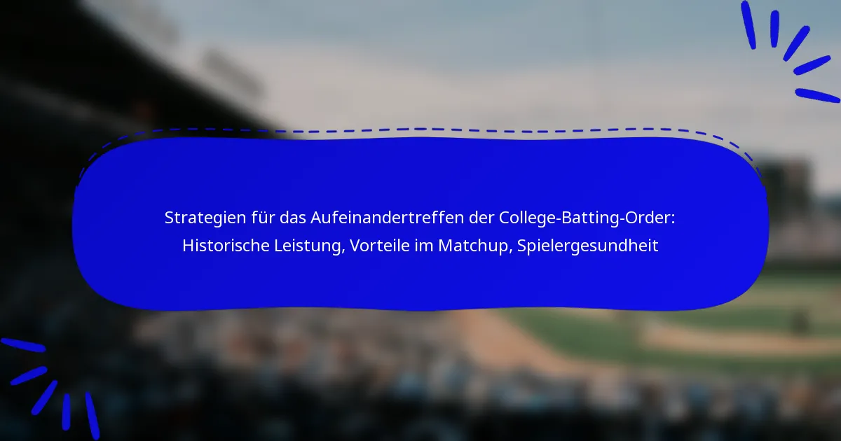 Im College-Baseball hängen effektive Strategien für die Schlagreihenfolge von einer Kombination aus historischen Leistungen, Vorteilen in den Matchups und der Gesundheit der Spieler ab. Trainer müssen die Spielerstatistiken und vergangene Begegnungen analysieren, um optimale Aufstellungen zu erstellen, die die offensive Leistung gegen verschiedene gegnerische Pitcher verbessern. Durch die Priorisierung dieser Elemente können Teams ihre Erfolgschancen auf dem Feld erheblich steigern.